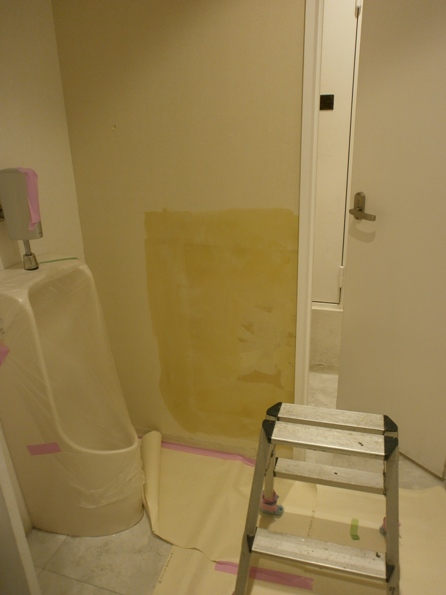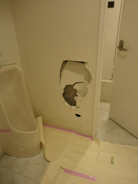 工事するまでの間ポスターにて目隠ししてありました。まずは養生を済ませてからポスターを取ります。