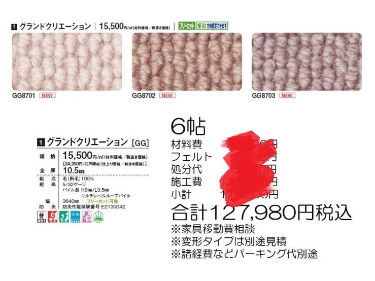 | サンゲツカーペット工事価格 |