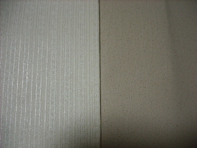 ビニールクロス) もっとも普及している種類です。職人が一番施工しやすく、数量面積が貼れる。造過程で高温にてエンボス発泡後プリント印刷。 壁タイプのジュラクは、非発泡。各メーカー機能性タイプを数多くラインナップしております。 用途に応じて使い分けて下さい。 汚れ防止品は、コーヒー醤油クレヨンについては、 24時間以内に拭き取れば汚れが残らない規定になっております。 更に汚れが落ちやすい壁紙としてミラクロス(サンゲツ)があります。他には耐水クロス、抗菌タイプ、スーパー耐久性クロス、通気性クロス、吸音クロス、リアテックなどのフィルムシート、掲示板用のクロスなど特殊品もあります。柄やカラーを重視するのか、それとも機能性かなど。 「施工注意」の商品は工事代金は割高となる場合もあります。 木質系) チーク・ウォールナット・コルクなど自然の木を薄くスライスし、型に切断したものを1枚1枚手で貼り合わせた壁紙です。 まったく加工していない天然木を使用 無機質) ガラス繊維・金属壁紙・スパンコール眩しいく艶やかな商品が多く、ディスプレイに向いています。 珪藻土・漆喰などは落ち着いた雰囲気でよろしい反面、非常にお手入れは難しい商品です。目線よりも上の壁面での使用がよろしいと思います。 ![]() 紙織り) 木の皮や草を薄くしたものを編み込んだものを、特殊加工で裏打ちした商品で通気性はバツグンです。 落ち着いた空間に仕上がります。 織物) 織物(布)壁紙はその織り方と原料により名称がいくつも使われております。一般的には、平織り・綾織り・朱子織が代表です。 また原料や主に使用している糸名などで表現されます。絹が原料ですと絹織物、ウールですと毛織物、綿織物、麻織物、化学繊維織物(レーヨン・ナイロン他)織物の産地は全国にありますが、京都の西陣織が有名ですね。 ビニールでは表現できない柔らかく、独特な色使いで、お勧めしたい種類です。 贅沢な「布クロス」を壁一面だけに貼るのもアクセントになります。 一般的には直貼り工法ですが、下張(袋貼り)工法も防火基準(平成21年改定)をみたしていれば、施工可能です。緞子貼り(どんすはり)やふとん貼り工法もありますが、今では椅子やソファーなどの職人さんの分類になってしまうのでしょうか。 ヒカリインテリアでは、織物直貼り工法と下張工法・オディオルームなどの防音機能を目的とした素材まででしたら可能です。 織物壁紙は水回りには不向きです。また材料価格はピンキリです。 紙壁紙) 古来伝統ある手漉き和紙から金銀砂子細工、切箔(きりばく)などの加工紙、紙織り、などがあります。近年エコや自然素材といった観点から注目されています。 和紙と言っても、掛け軸などで使用する裏打ち紙から上張り紙までたくさんの種類があります。 歴史は古く1000年と言われていますが、掛け軸は本来中国の作品を模造して作られたのが最初と聞いております。 和紙の原料は、楮(こうぞ)三椏(みつまた)雁皮(がんぴ)などの木の皮です。 和紙や織物の本場は古くから関西地方、京都などがあります。 徳川時代には、和紙の職人などは特権が与えられていたそうです。 掛け軸などの表装材から唐紙(からかみ)今で言う襖、質屋の代帳と利用されていました。 自然素材のため継ぎ目により色合いや風合いは異なります。直貼り、下張工法とあります。紙の下張工法の場合は、一分の重ね張り仕様です。下張工法の場合、梅雨時期など湿度がある日は、ぶよぶよ波打ったようになりますが、晴天になれば、ピンと張ります。 (雨の日の障子紙のような状態) 自然素材の壁紙は、呼吸しているかのように調湿効果もあり人と住まいに優しい商品です。 織物・特殊クロスは施工する際の道具が若干違い、更に壁紙の表面に糊を付着させないように気を使わ なくてはならず、施工する職人も少なくなってしまいました。 又、自然素材のために経年やけ・変色と掃除や維持管理も難しい商品のため、お客様に選ばれる機会も少なくなってしまいましたが、ビニールクロスには無い豪華な雰囲気を演出できますのでご予算の許す方でしたら、ぜひお勧めいたします。 材料費別の織物施工手間単価 直貼り工法850/m~業者価格(職人手間) 下張り工法 人工 珪藻土 木質系 ![]() 紙布 織物 ![]() メタリックスパンコール ![]() ガラスビーズ ![]() 吸音クロス ![]() マグネットクロス ![]()