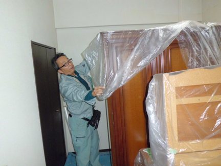 ②部屋の中で移動しながら施工) 壁紙作業で移動、床の工事で移動、2回移動しなくてはなりませんので割り増しとなります。