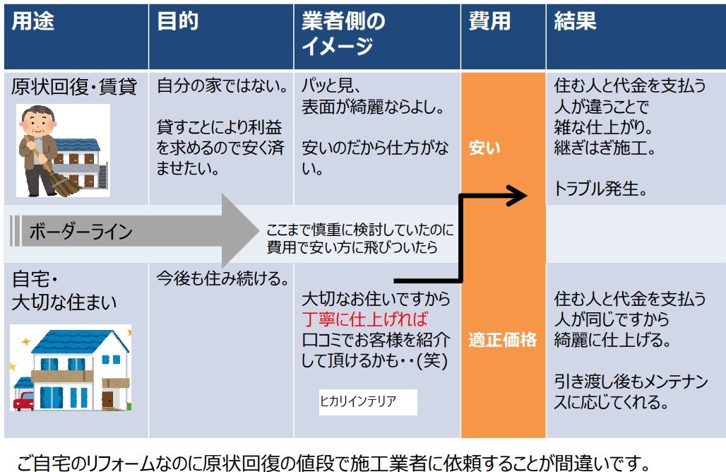 技術力の高いベテラン職人と経験の浅い職人では人件費が異なります。提示される価格には多くの意味が含まれています。