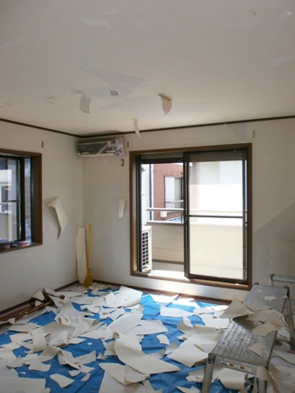 | 2012/5/18~ 初日作業 養生・器具プレートカバー外し はがし下地調整・和室・LDK |