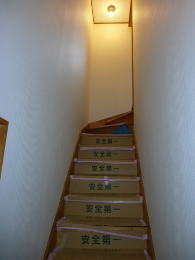 無意識に壁に手を当てて降りていたので、自然と同じ部分が汚れてしまいました。