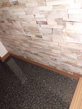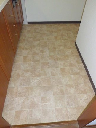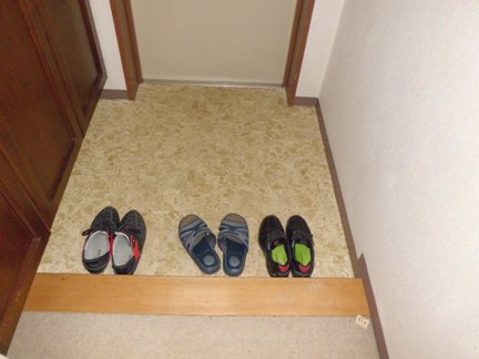 上がり框もバランスを考え大きくし、土間はシート貼りからビニール床タイル