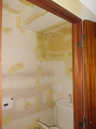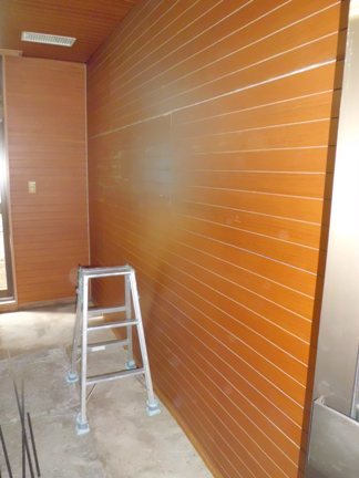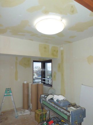 ![]() 1はがし途中 | ![]() 2下地調整 | ![]() 3完成 床 東リMC8316 天井壁サンゲツ77-577 照明オーデリックOL211531N | ||||||||||