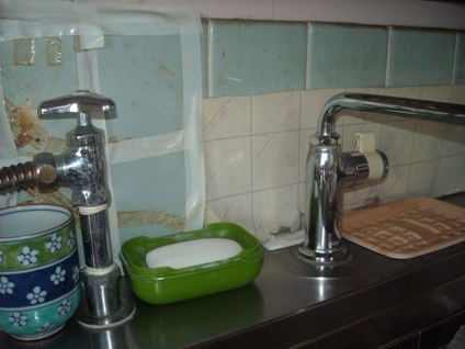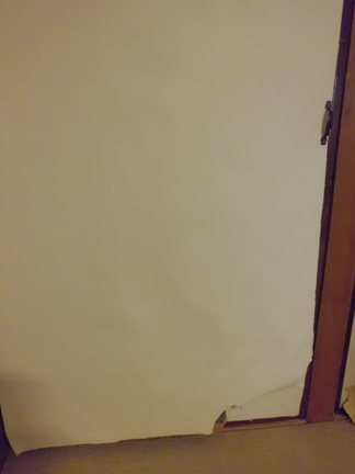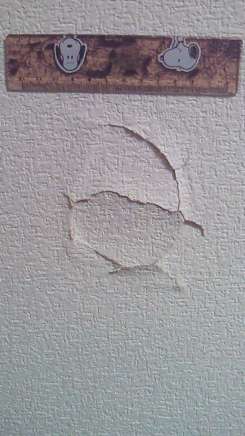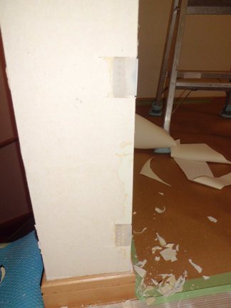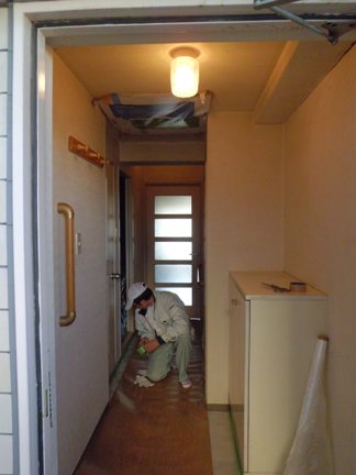 ![]() | 施工途中 クロスのはがし作業。 レンズにほこりが付着してしまいました。 |
