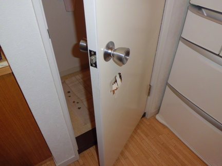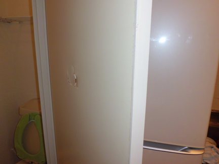 ![]() ![]() ご覧のように洗面所の吊戸が脱落! 困ったお客様はリフォームした担当者に連絡を試みるも音信不通・・ 左の画像は修理金額を教えて下さいと、お客様がメールに添付して こられた画像です。 付属の太いビスが使用されていましたが、一箇所も下地に効いていませんでした。 |