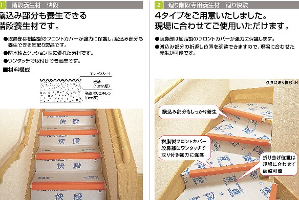 厚手のダンボール素材で加工された床専用の養生材を使用します。