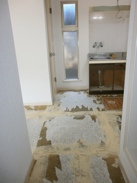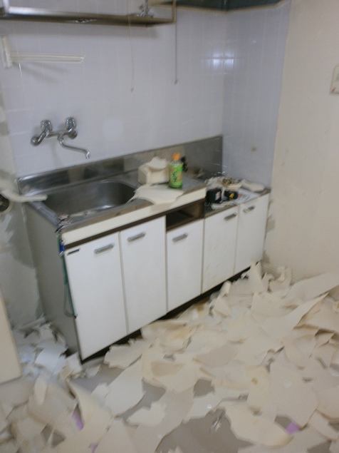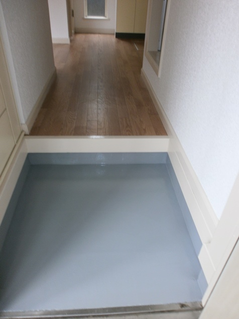 クロス・クッションフロア貼替キッチン流し台・吊戸棚・レンジフード交換枠廻り・玄関土間塗装
