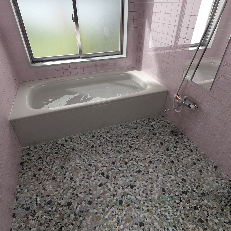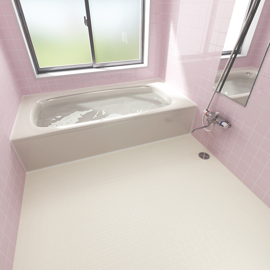 | 冷たいタイルのお風呂 白い目地が取れて気になる お掃除が疲れる 工事は1日で済み、既存の上から施工するのでゴミ・ホコリが出ません。 それが 「東リ バスナフローレ」で床を綺麗にします。 特徴) 素足で触れてもヒャッとしない。 衝撃を吸収。 滑りにくい。 水はけが良い。