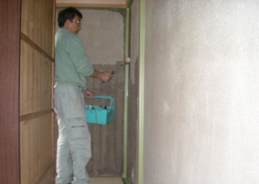 貼る壁面が砂壁、繊維壁、粉吹きモルタル、塗装下地、化粧プリント板などそれぞれの状態によって費用は違います。その中で一番費用が高くなってしまうのは砂壁・繊維壁のケースです。既存の砂壁のまま作業開始するケースもありますがここでは砂壁の表面をはがした段階からの作業手順。