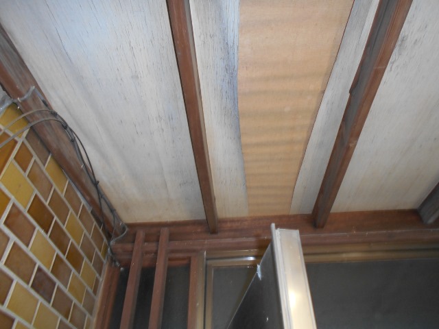 依頼となりました。天井のベニア板が朽ちてめくれてしまっています。