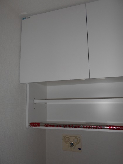 洗濯機上部の壁面に吊り戸棚取り付け
