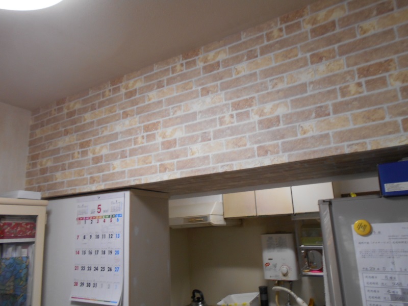 キッチン廻りの天井壁のクロス貼替とクッションフロア
