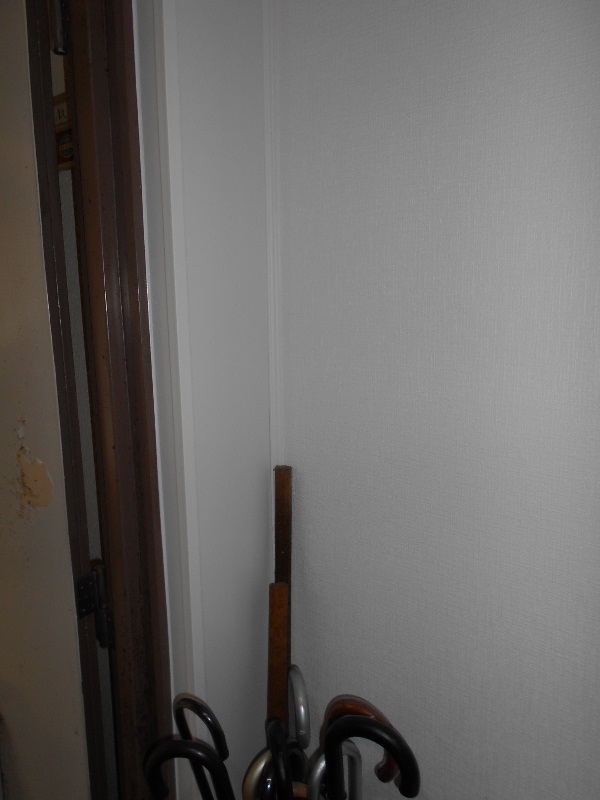 | 外壁に面するコンクリート下地に貼られた クロスがカビで変色。 特に北面は冷たい風が当たるので 室内との温度差が大きく、 冬はびっしょり濡れてしまいます。 このような場合、クロスの貼替では解決は 無理ですから、別の方法で対応となります。 ![]() ![]() ベストな提案として断熱パネルをお勧めします。 【メリット】 ① 短期間で完成。 ② 工事による騒音がほとんど無い。 ③ コンクリート本体を切断や、ビス止め 固定穴などは不要。 【デメリット】 ① 断熱材を含めて約1センチあるので 枠廻りチリ際の収まりの見栄え。 ② 2,4mのサイズですから一時的に作業スペースの確保。