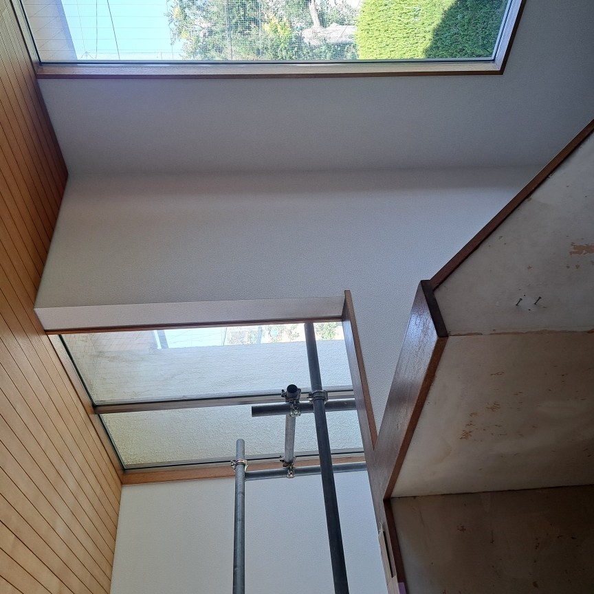 高所にある窓は清掃が出来ないので、足場を組んだ際に拭き掃除をします。