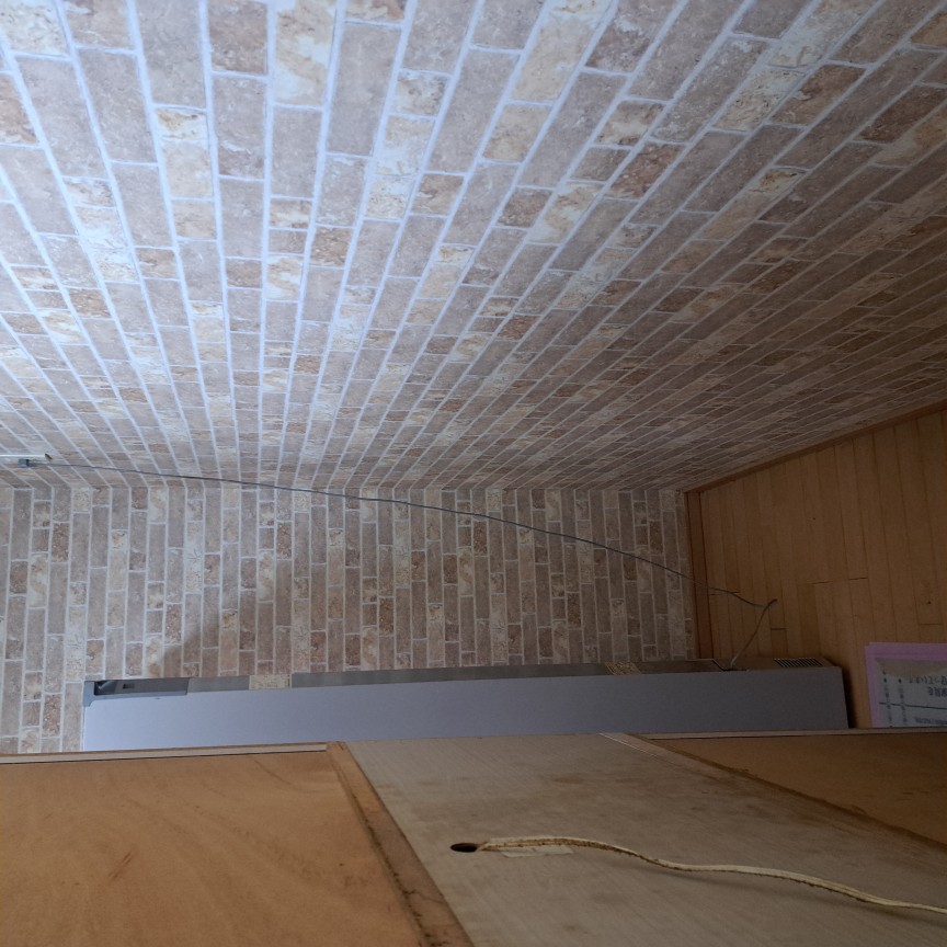 キッチンカウンター壁面をレンガ調のクロス仕上げにします