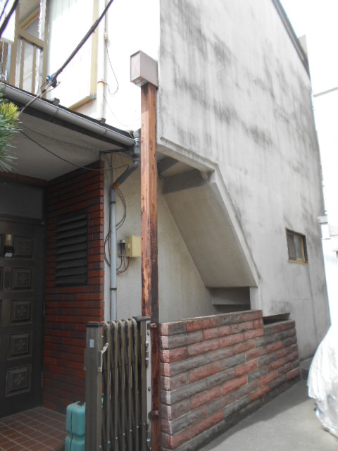 部屋の収納棚と痛みの激しい鉄骨の柱、